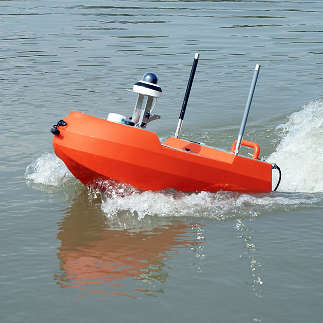 采用阻燃型高分子聚合物材料制成,艇体尺寸小、重量轻,可直接放入车辆后备箱,适合野外环境作业;采用模块化设计,可根据不同的作业任务需求,搭载ADCP、多参数水质分析仪、侧扫声呐、测深仪等测绘设备,单人即可完成多样化的任务载荷、动力电池等更换。可广泛应用于水上巡逻、水质采样、水下探测等领域。