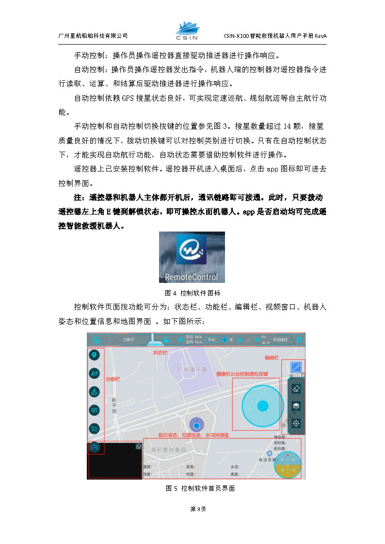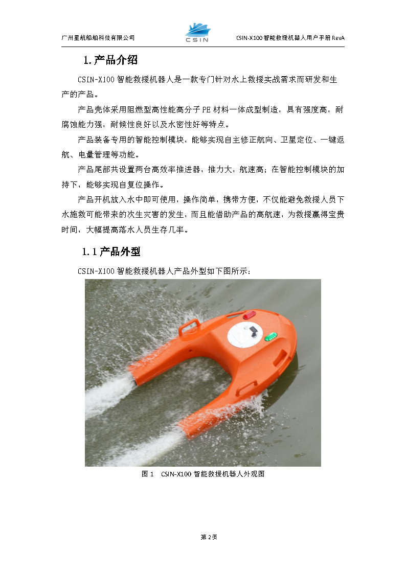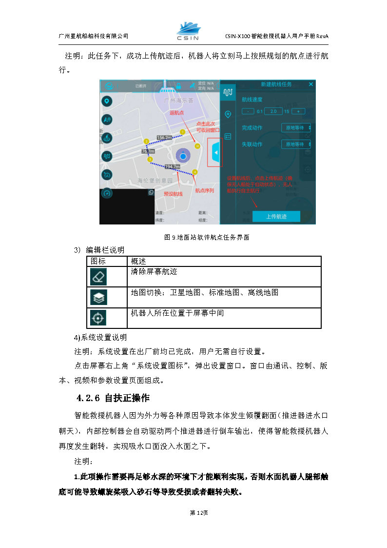 l 机器人外壳上设置有本地操控按键,可本地控制其航行,不需要远程遥控即可航行