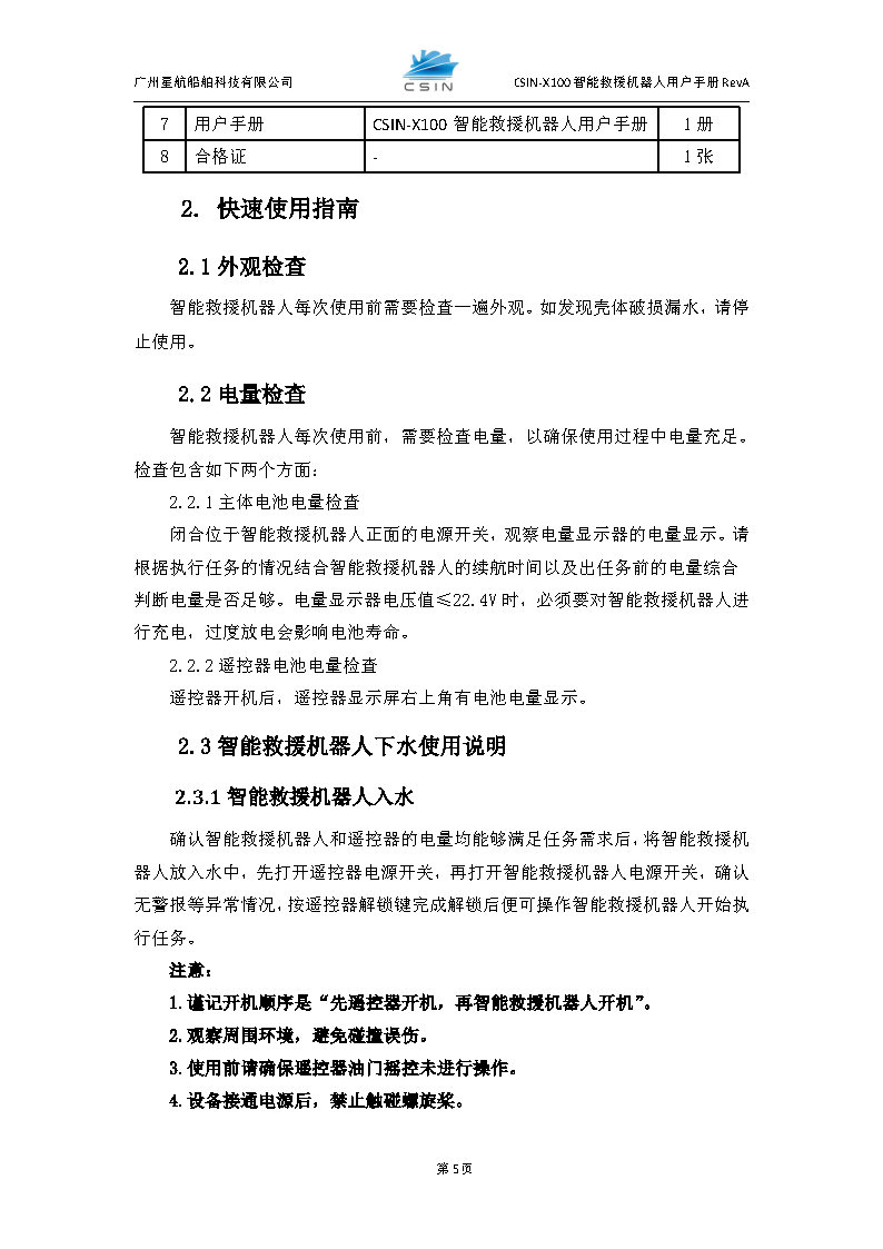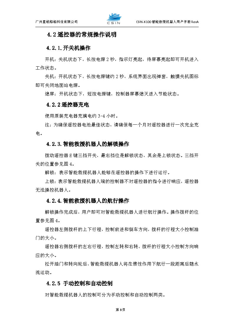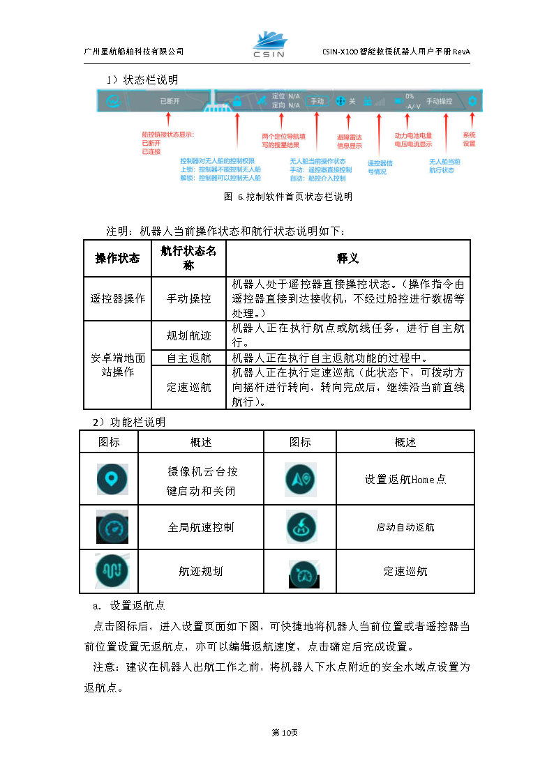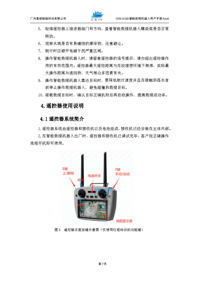 l 机器人外壳上设置有本地操控按键,可本地控制其航行,不需要远程遥控即可航行
